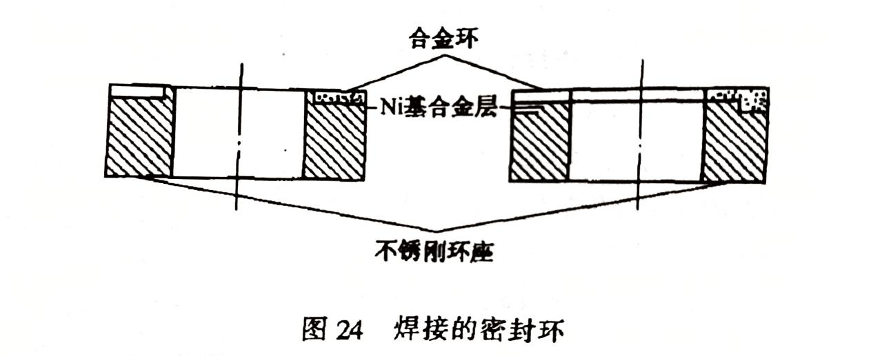 為改善熱裝式密封環(huán)松脫的問(wèn)題,呈現(xiàn)了焊接的密封環(huán)(圖24)。所用的硬質(zhì)合金是以Cr3C2為硬質(zhì)相、Ni為粘結(jié)相的燒結(jié)合金材料。耐腐蝕優(yōu)于YG6等硬質(zhì)合金,高溫下具有優(yōu)異的抗氧化性能,在1000℃空氣中加熱2小時(shí)無(wú)任何變化。可是導(dǎo)熱性能較差,僅為YG6的1/3;線膨脹系數(shù)大,比YG6大1倍多,為10.2x10-6/℃(10~500℃時(shí))。這兩點(diǎn)導(dǎo)致了耐熱沖擊性能不如YG6好。正因?yàn)榫€膨脹系數(shù)較大,和馬氏體不銹鋼接近(10~500℃時(shí)為11x10-6/℃),為和環(huán)座焊接提供了有利條件。焊接時(shí)需在環(huán)和座之間鋪放一層鎳基粉末,置于真空電阻爐中,經(jīng)1100℃高溫熔焊,然后進(jìn)行回火處理,以消除焊接應(yīng)力。由于是焊接的密封環(huán),硬質(zhì)合金環(huán)的厚度可以比YG6薄,毛坯的厚度也只要3~3.5mm。又因密度小,是YG6的一半(7~7.5g/cm3),因此,可節(jié)約貴重金屬,價(jià)格較低。這種合金的牌號(hào)為CN15,其間Cr3C2 85%、Ni 15%,由北京硬質(zhì)合金廠研制成功。