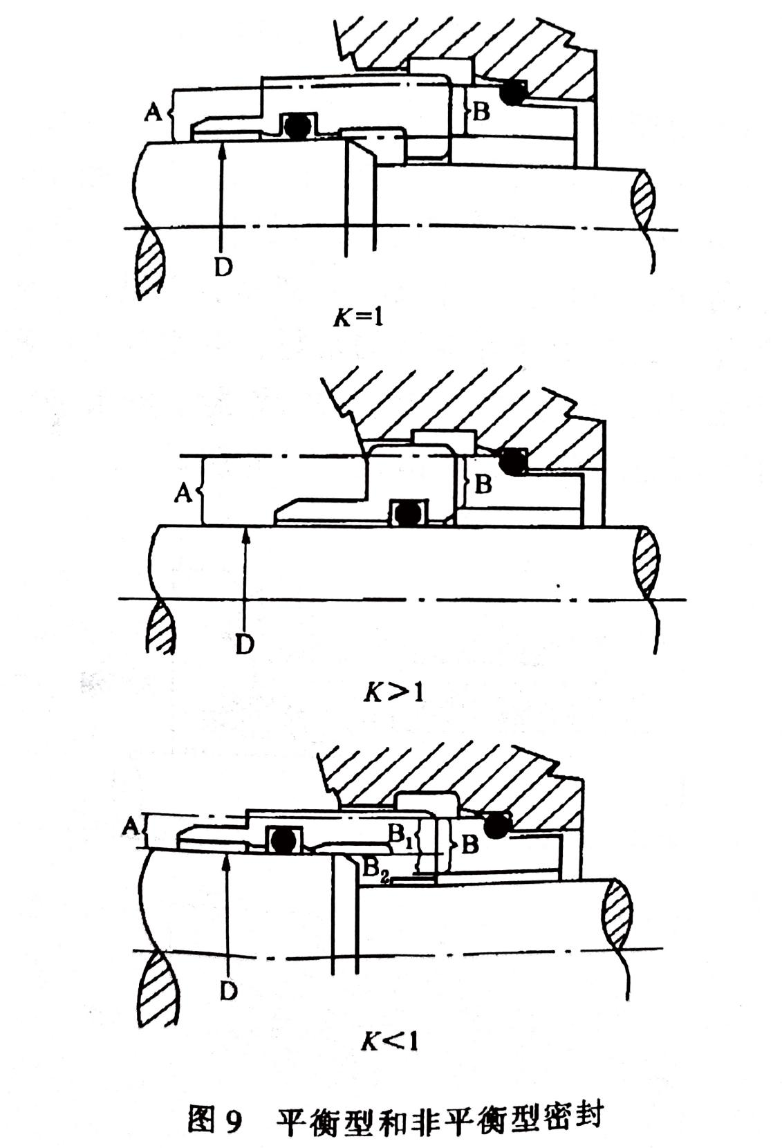 平衡型:載荷系數(shù)K<1.0的密封,也就是由介質壓力變化引起的端面比壓的增量小于介質壓力的增量,稱為平衡型密封。