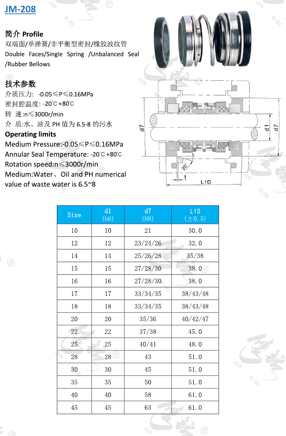 雙端面/單彈簧/非平衡型密封/橡膠波紋管