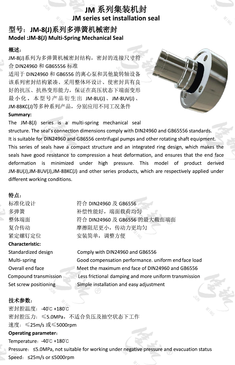 JM-8(J)系列為多彈簧機械密封結(jié)構(gòu),密封的連接尺寸符合DIN24960和GB65556標準