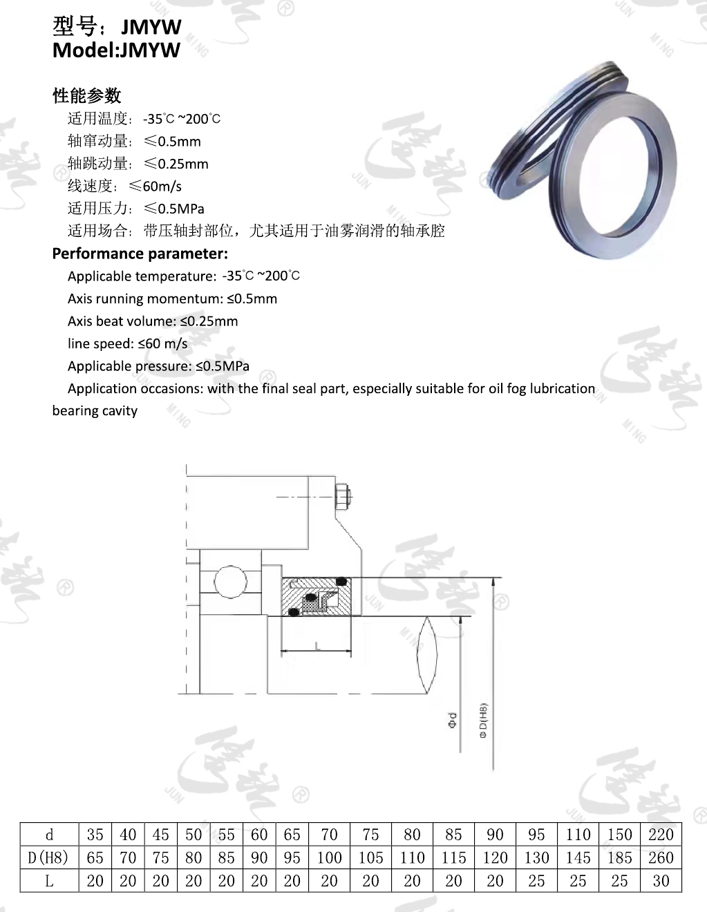 ○適用場(chǎng)合:帶壓軸封部位,尤其適用于油霧潤滑的軸承腔